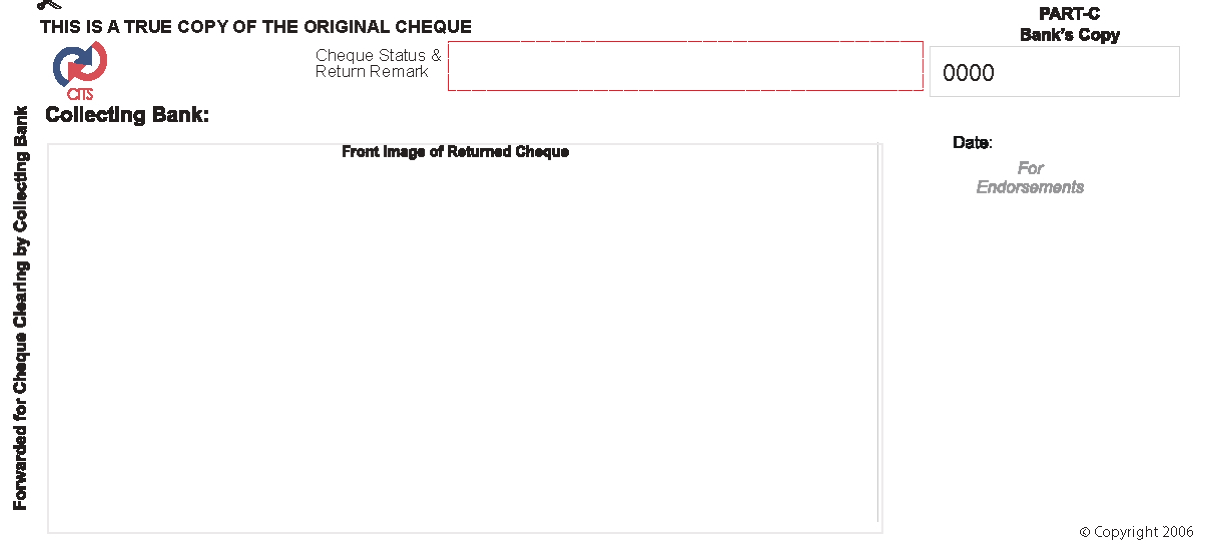 பகுதி இ என்பது அது தொடர்பான காசோலையாகக் கருதப்படும்> எனவே இந்தப் பகுதியின் முன்புறம் அசல் காசோலையின் முகத்தின் உண்மையான> முழுமையான மற்றும் துல்லியமான படத்தைக் கொண்டிருக்கும்.